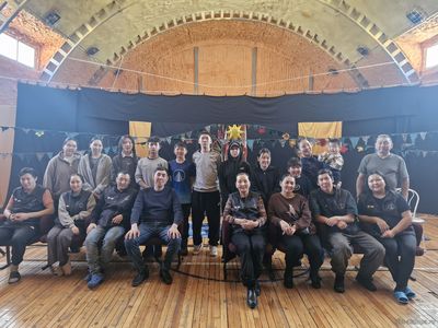 Ньурба театрын артыыстара Елена Егоровна Попова салайар театральнай студиятын оҕолорун кытта көрүстүлэр