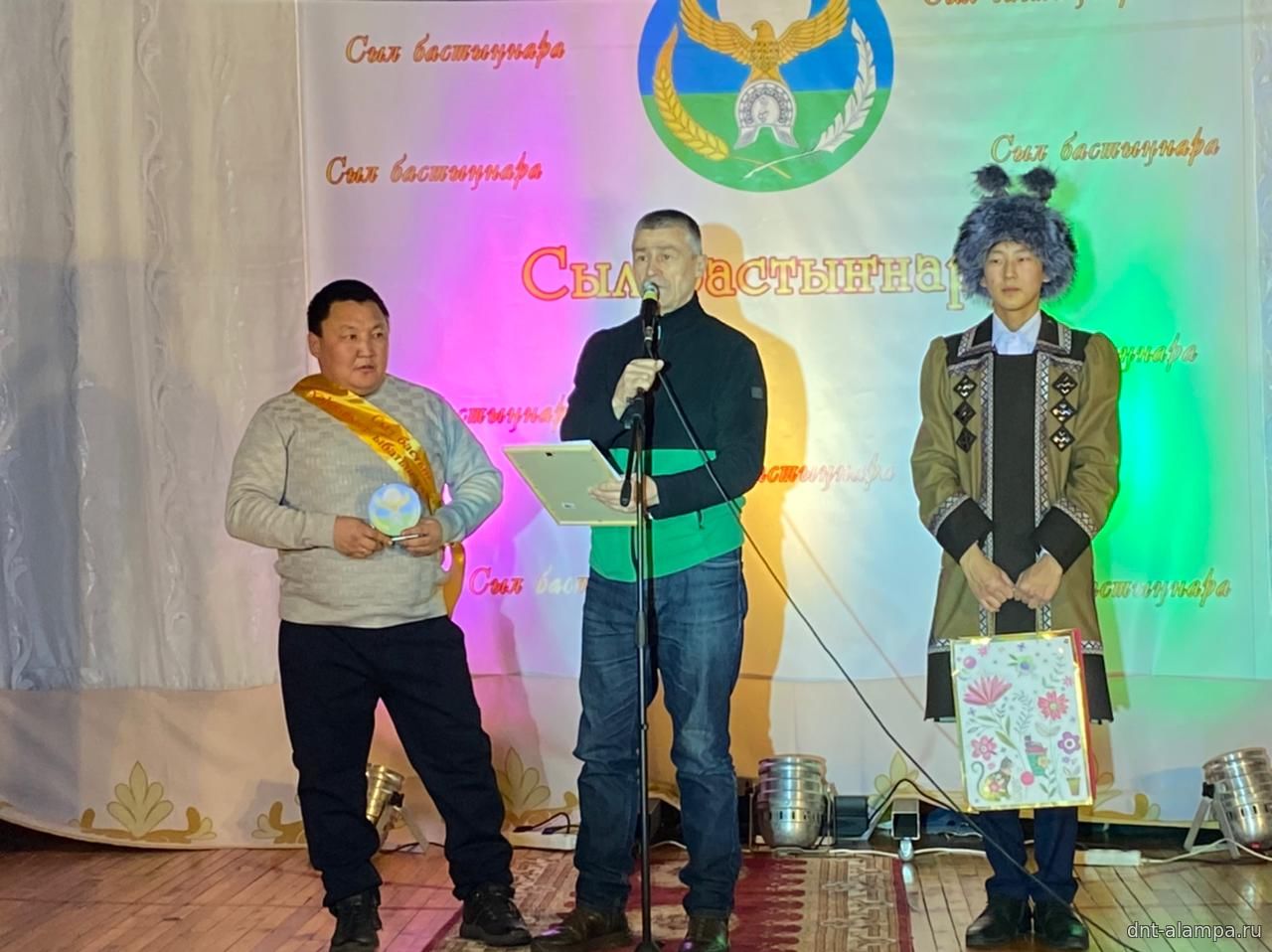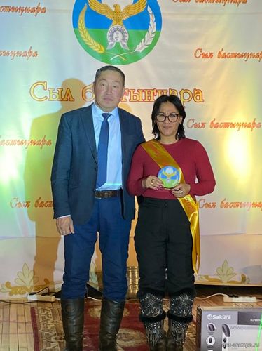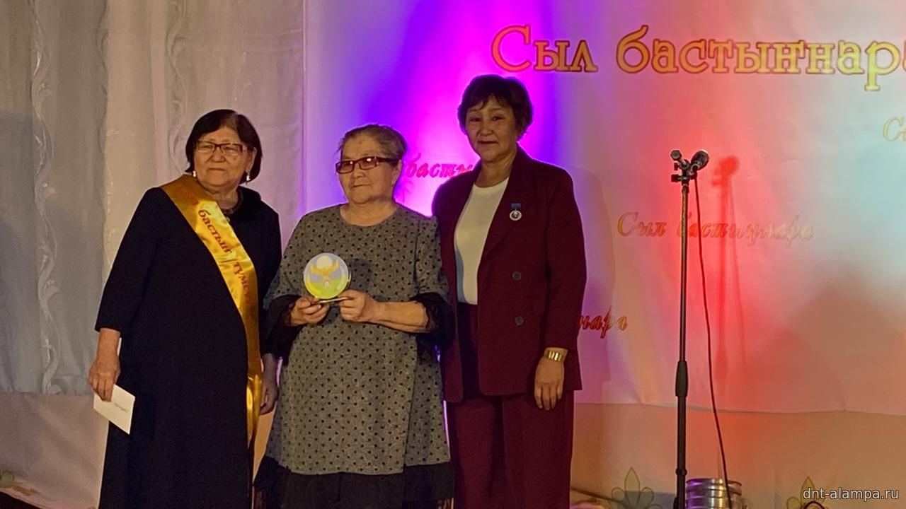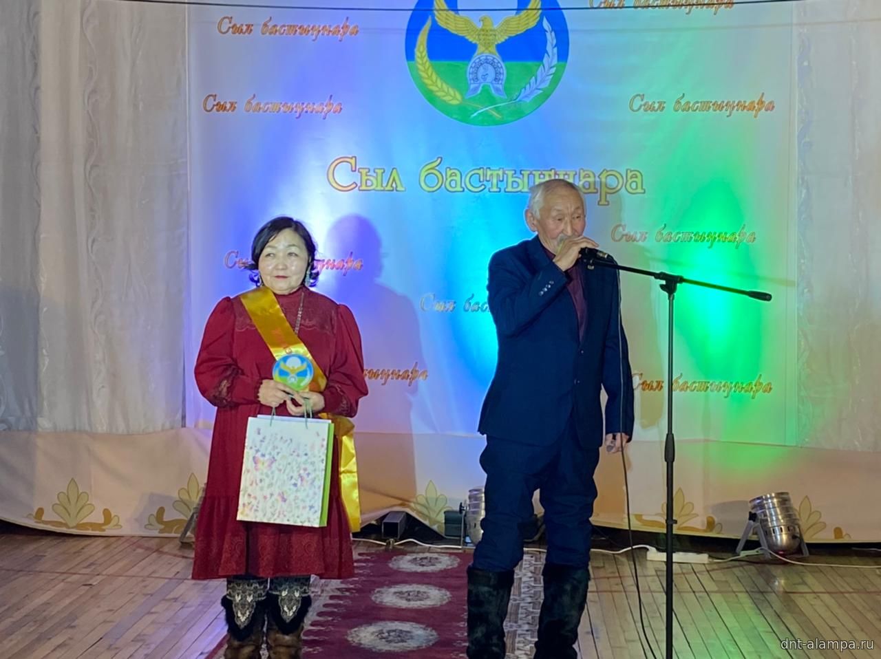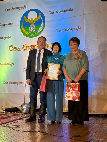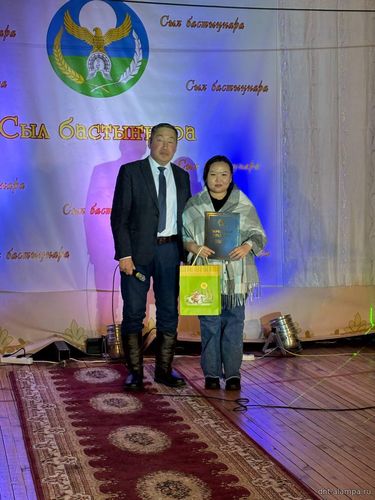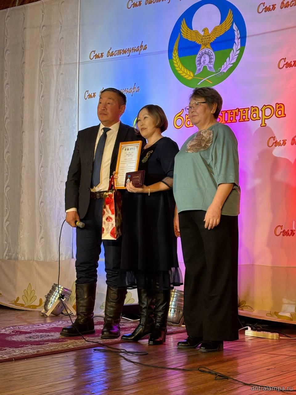 "Сыл бастыҥ түмсүүтэ" буоллулар "Көмүс сүүтүк" иистэнньэҥнэрбит бөлөҕө, наҕарааданы туттарда Алампа аатынан НАДь директора И.С.Жараева.