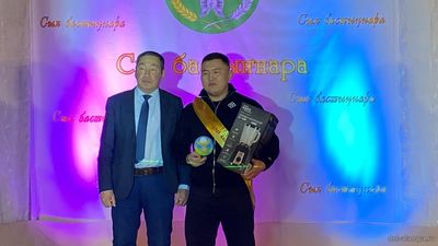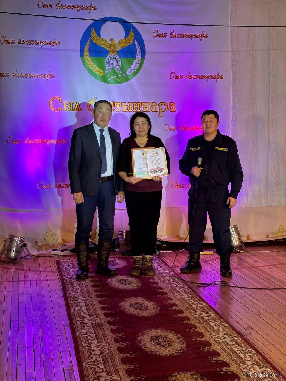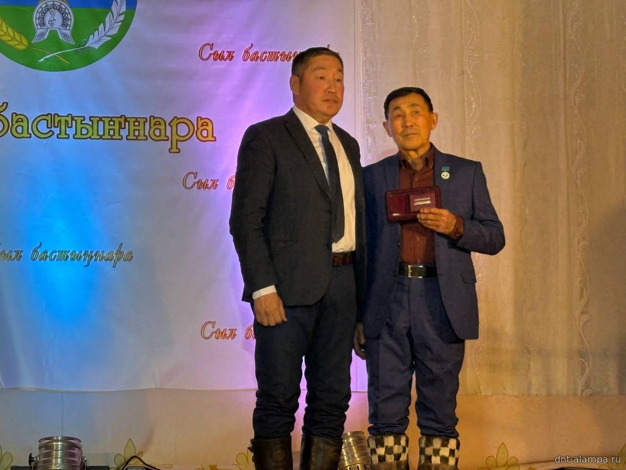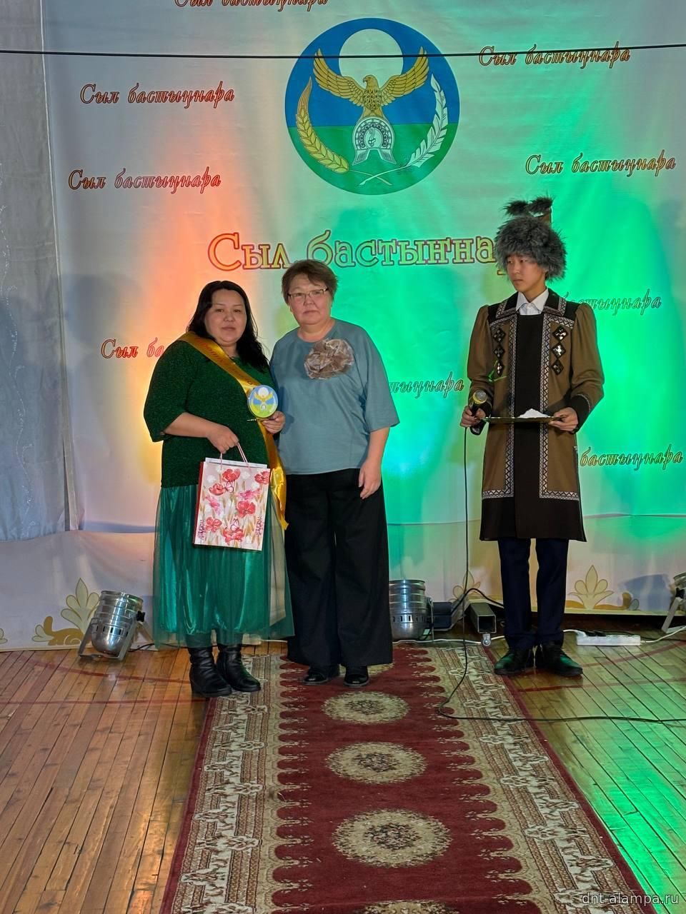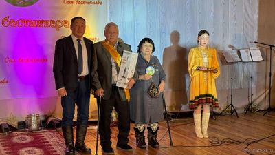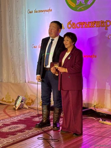 "Сыл бастыҥ түмсүүтэ" буоллулар "Көмүс сүүтүк" иистэнньэҥнэрбит бөлөҕө, наҕарааданы туттарда Алампа аатынан НАДь директора И.С.Жараева.